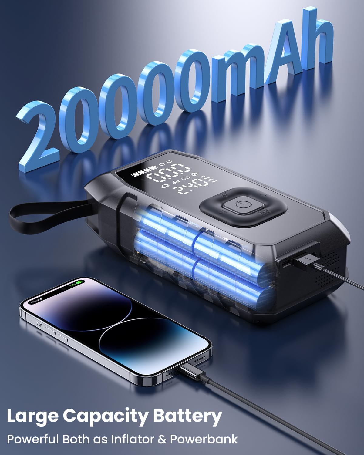 2. 20000mAh battery for extended use